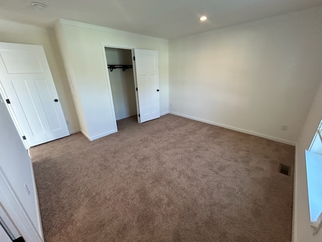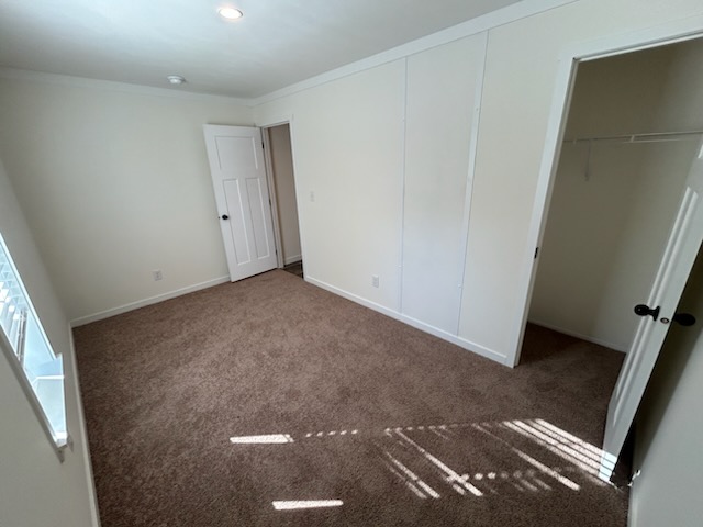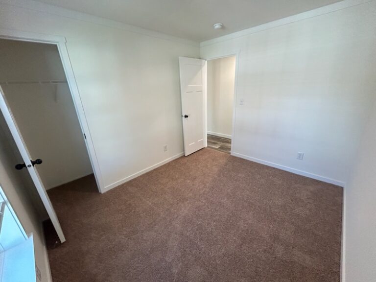 On the opposite end of the home, the second and third bedrooms are perfect for children, guests, or use as a home office. Each room includes a built-in closet and can easily accommodate a twin or full bed with other furnishings.