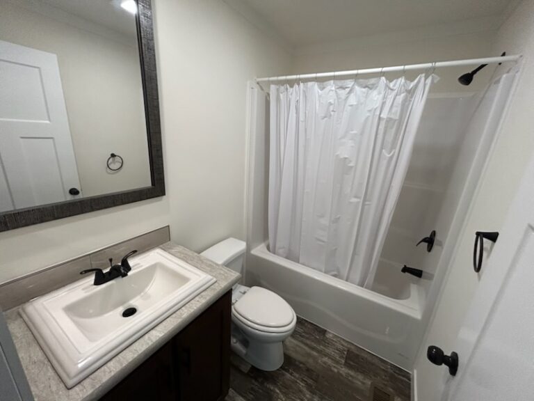 The second full bathroom is centrally located for convenient access from the common areas and secondary bedrooms. It features a combination tub/shower, vanity, and toilet—ideal for family or guests.